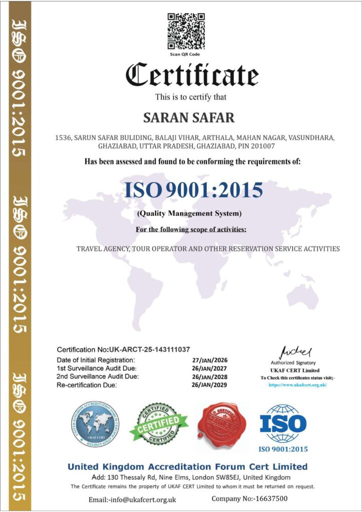Setting the Standard: Saran Safar Achieves ISO 9001:2015 Global Quality Rating.